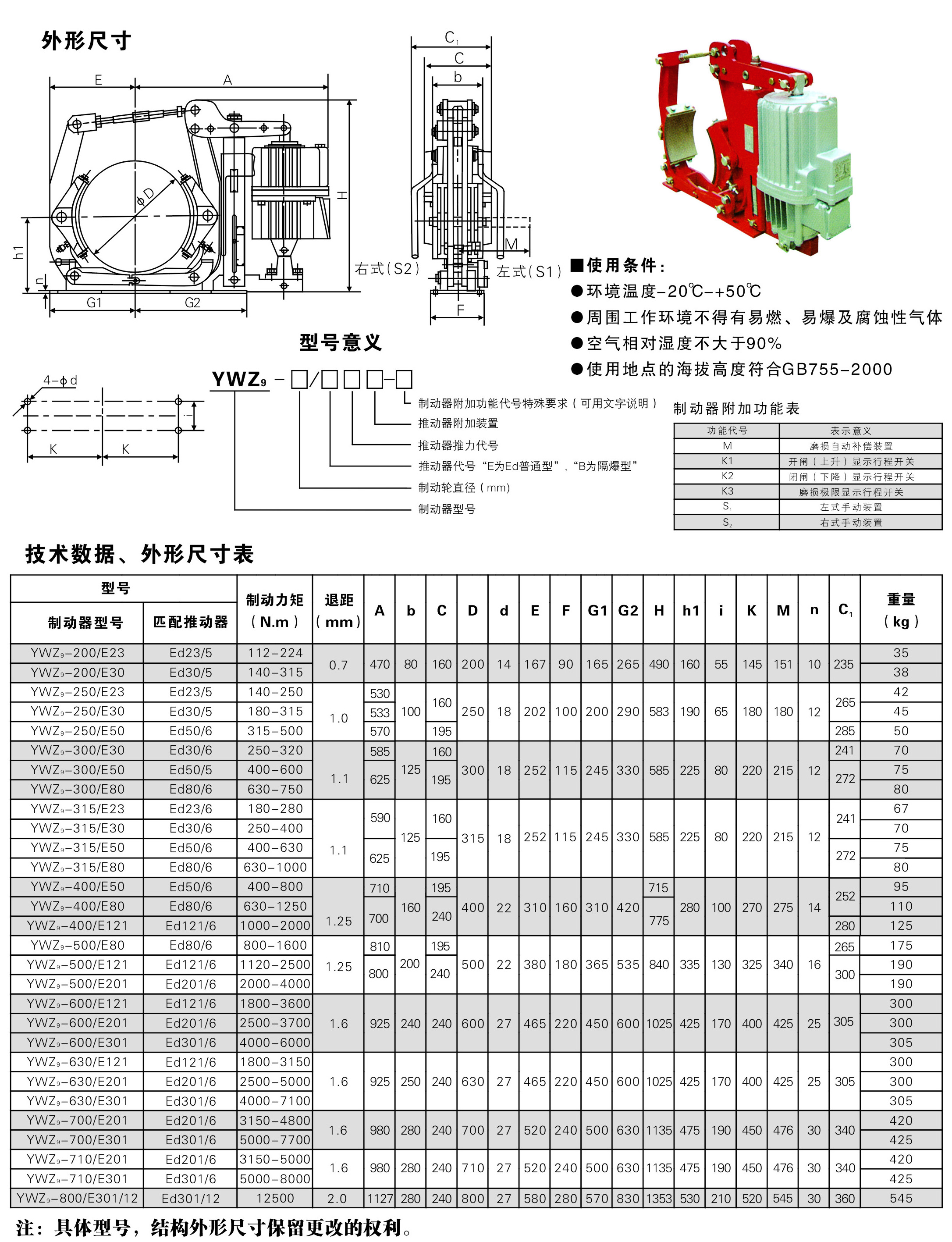 制動器安裝尺寸和制動力矩參數(shù):GB6333-86標準,技術要求符合JB/T6406-2006標準。