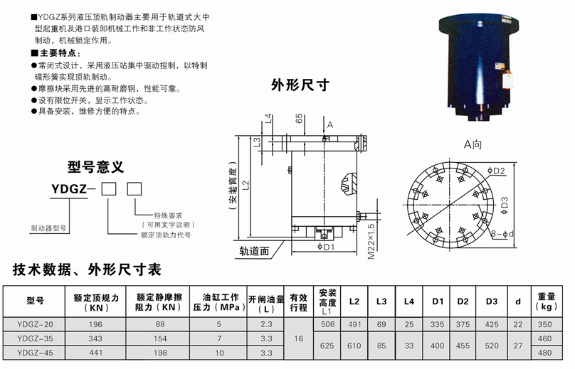 YDGZ系列直動(dòng)式液壓頂軌制動(dòng)器